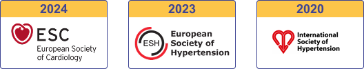 1. Kengne AP, et al. Expert Rev Pharmacoecon Outcomes Res. 2024;24(7):817-827. 2. Parati G, et al. Hypertension. 2021;77(2):692-705. 3. Weisser B et al. Eur Heart J Cardiovasc Pharmacother. 2025;10(8):686-693. 4. McEvoy JW, et al. Eur Heart J. 2024;45(38):3912-4018. 5. Mancia G, et al. J Hypertens. 2023;41(12):1874-2071. 6. Unger T, et al. Hypertension. 2020;75(6):1334-1357. 7. Schmieder RE, et al. Hypertension. 2023;80(5):1127-1135. 8. Tung YC et al. J Clin Hypertens.2015;17(1):51–58.